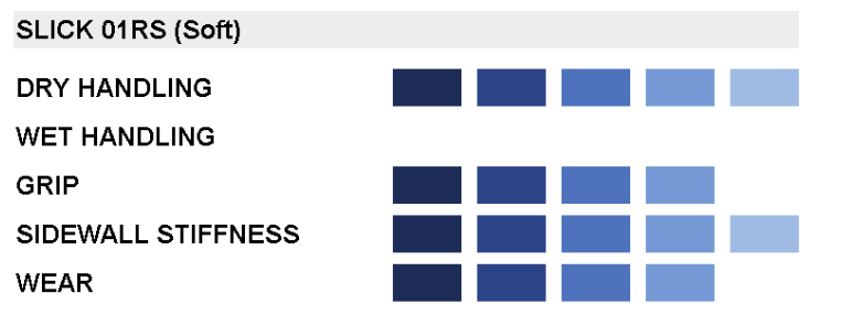 Designed to meet the demands of motorsport enthusiasts, the Slick 01RS ensures strong and consistent grip on the track surface, allowing you to push your vehicle to the limit with confidence. Its innovative design includes features like center straight grooves for efficient water dispersion, a rigid center rib for enhanced traction and stability during acceleration, and variable wing grooves for improved cornering and directional control.