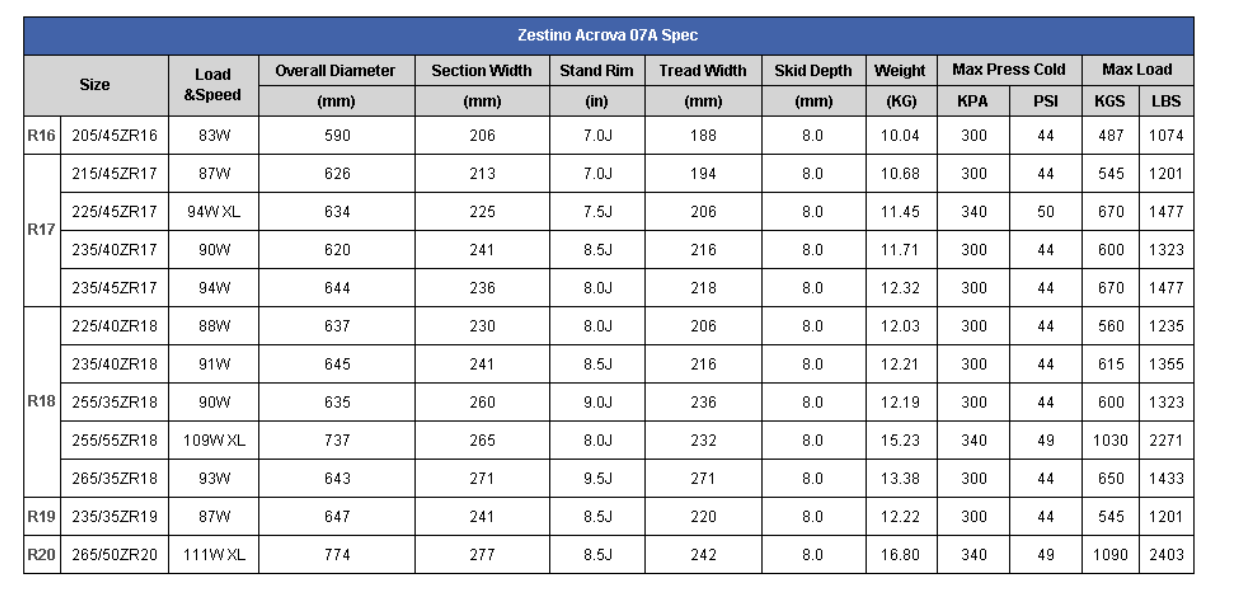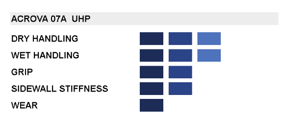 The 07A UHP (340TW) is the hard compound in the Zestino Acrova range, a high performance road legal tyre with a bias towards drifting and street applications with E-mark. Excellent durability without compromising grip and control. The Acrova 07A UHP is our most popular model for performance car’s and and circuit racing.